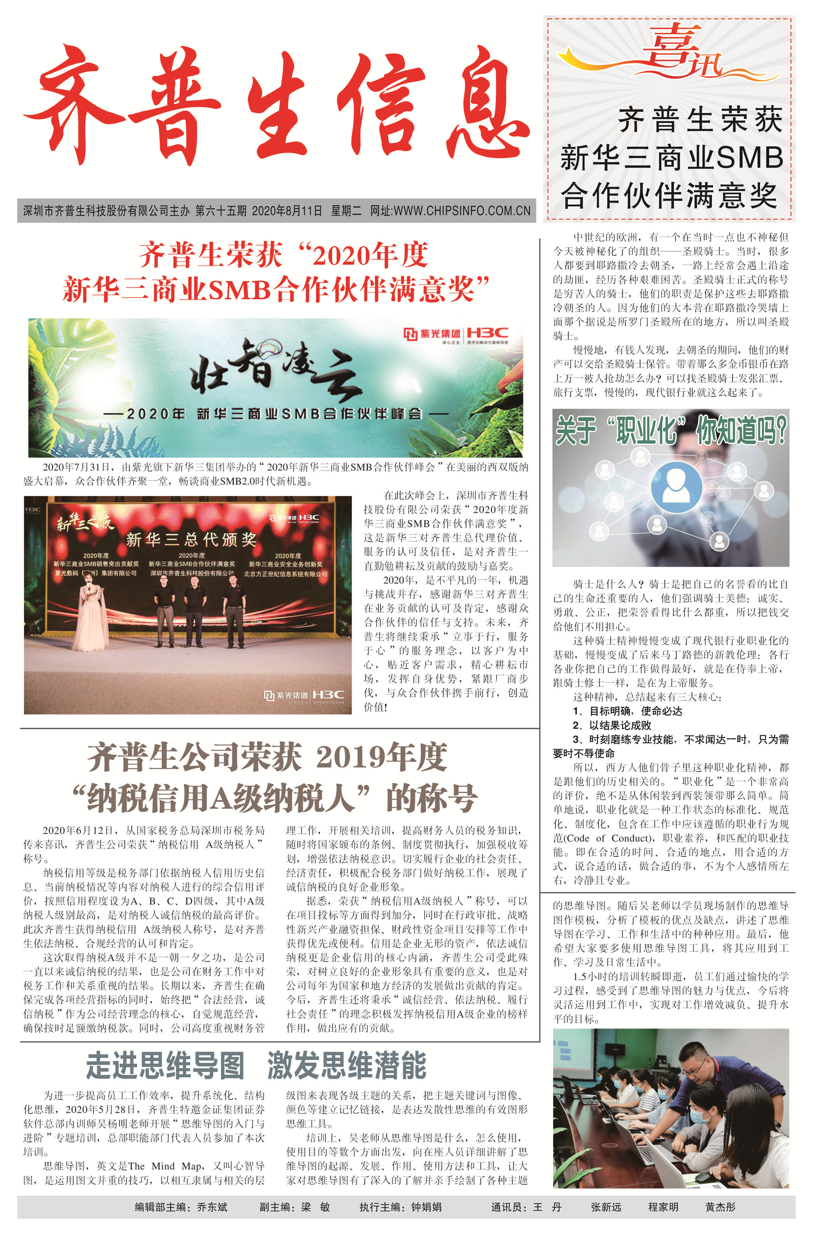 齊普生榮獲“2020年度新華三商業SMB合作伙伴滿意獎”——壯志凌云 再登新峰