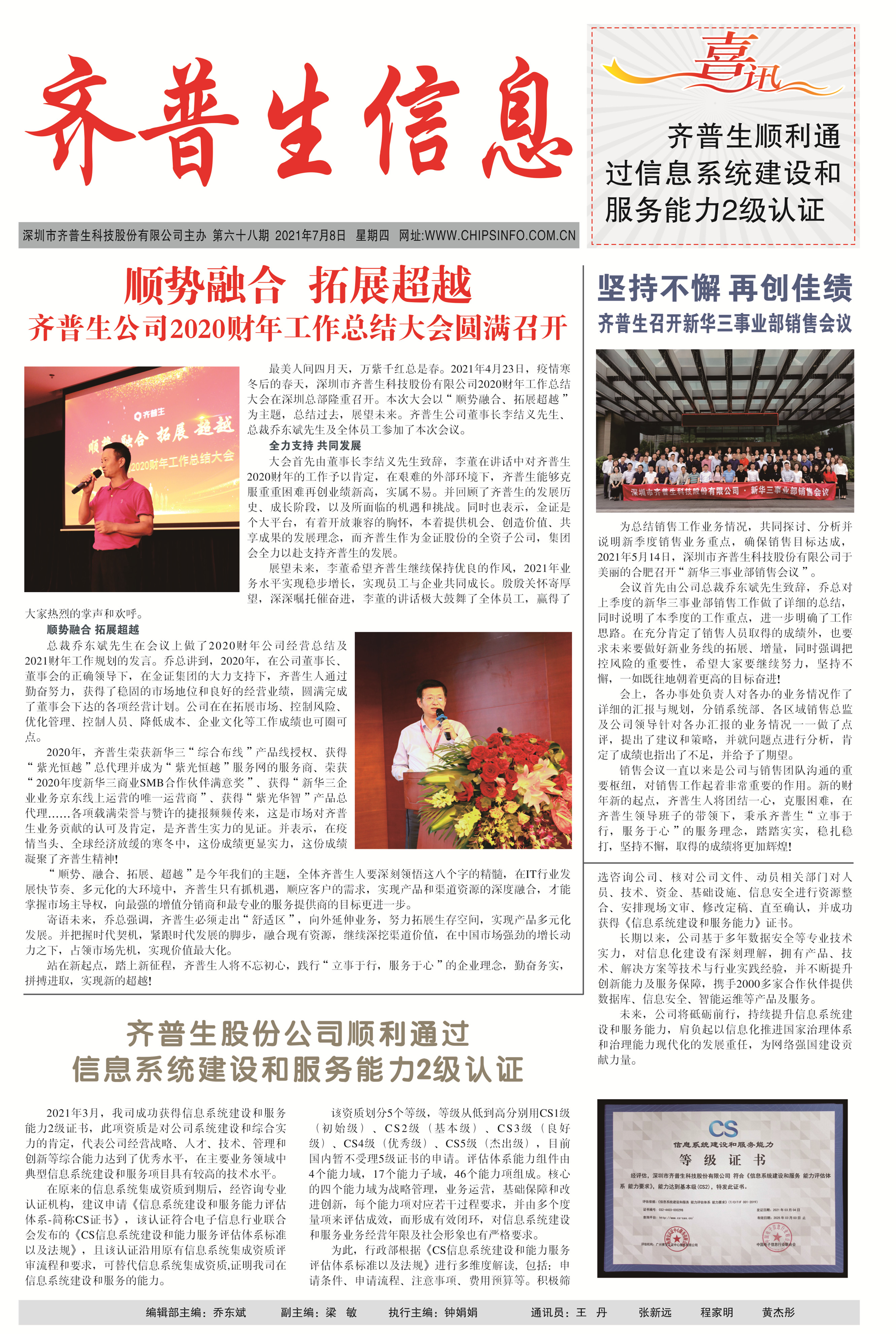 齊普生股份公司順利通過信息系統(tǒng)建設(shè)和服務(wù)能力2級認證