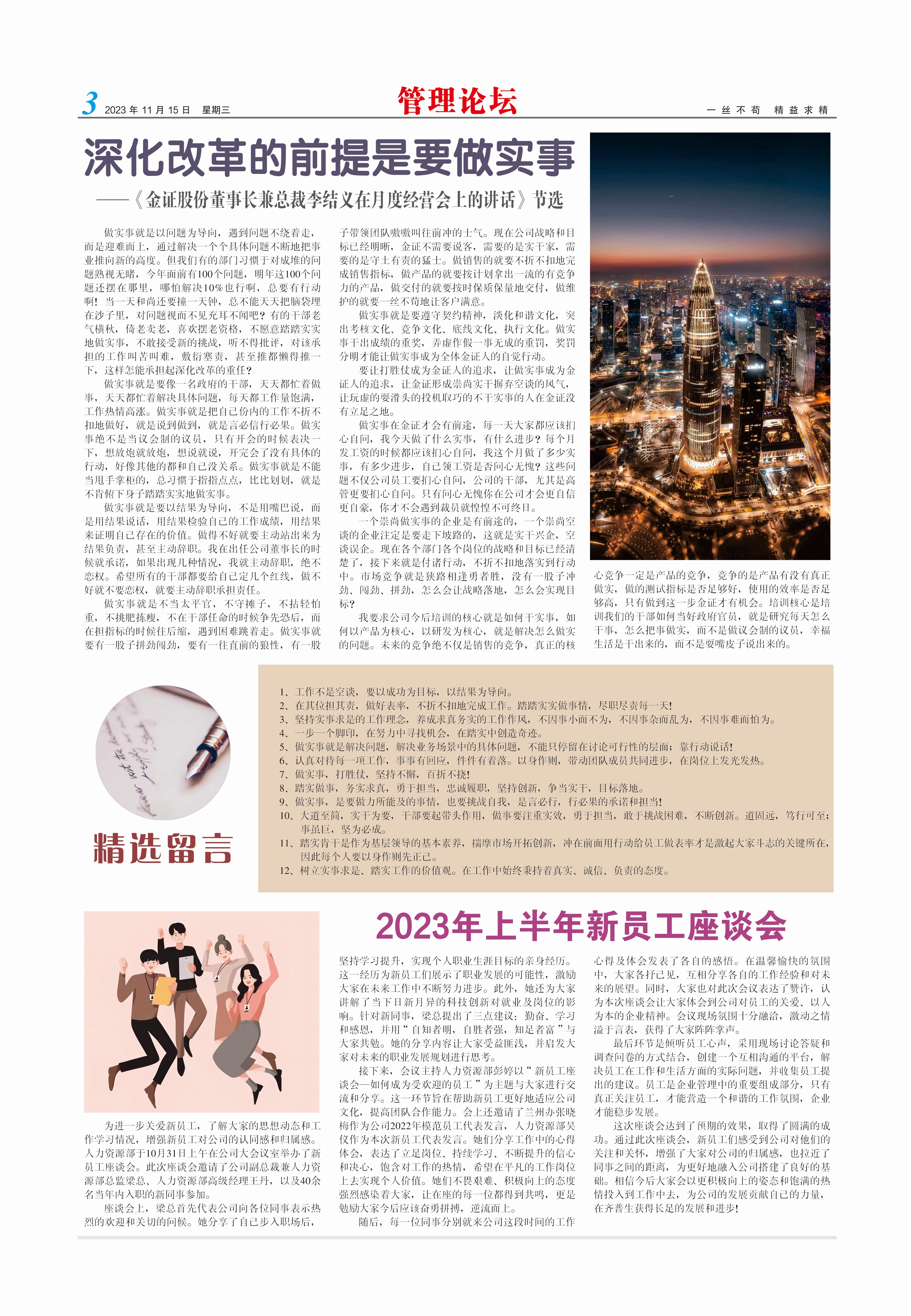 深化改革的前提是要做實事——《金證股份董事長兼總裁李結義在月度經營會上的講話》節選