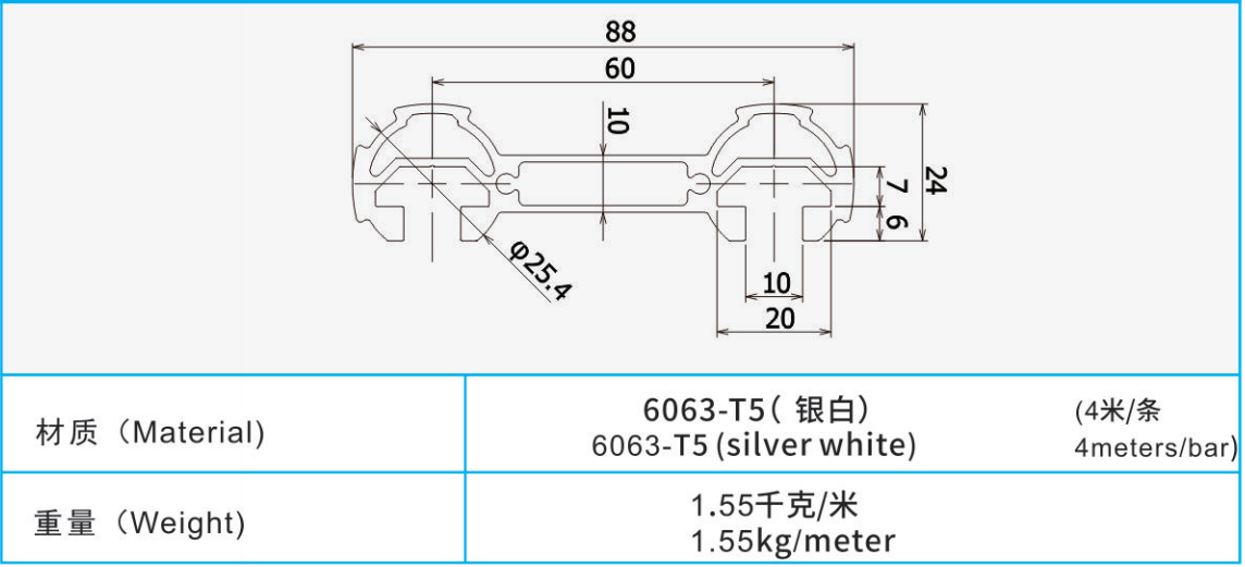 線棒材質(zhì):6063-T5(銀白)(4米/條)