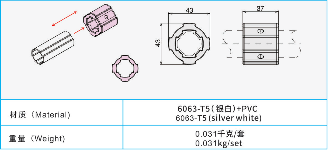 材質(zhì):6063-T5(銀白)+PVC